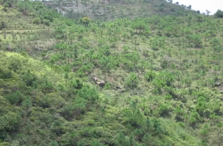 Photographs of a section of the Cultural Operation at Lumlaitsohphoh area taken during 2007 & 2009 showing change in vegetation (Note increase of Crown Cover) (N 25 26 50.7, E 91 43 59.9)