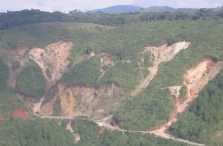 Note the resultant landslides edging towards the Sacred Grove above and subsequent stabilization of landslide area